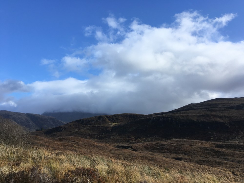 Már nem jártunk messze a csúcstól, amikor a szél elkezdett feltámadni, de nem fordultunk vissza. A hegy déli oldalán járva végre láttuk a Ben Nevis lábát, de a tetejét eltakarta a felhőzet. Többek között ilyenkor már ezért nem lehet felmenni a csúcsra áprilisig. Plusz amellett, hogy nem lehet látni, hideg is van és hamar sötétedik.