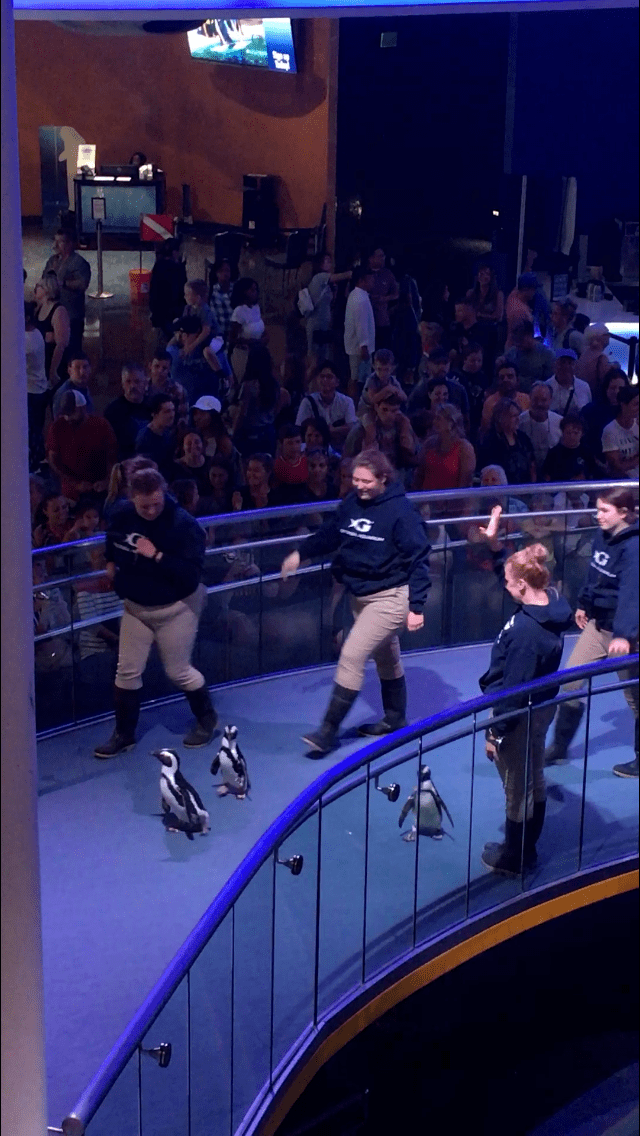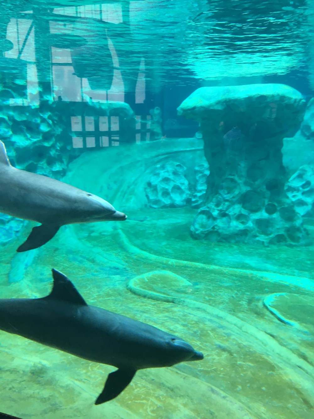 Rendesen a zsebébe kell azonban nyúlnia annak, aki ilyen kalandokra vágyik. A belépő 39 dollár fejenként, amely tartalmazza a delfin show-t, egy 4D vízivilág-vetítést, a “Waddle Walk”-ot (3-4 pingvin 10 perces bemutatója az aulában), egyéb extra programokat azonban nem. Az akvárium területén van egy étkezde, amely bár nem a legolcsóbb, legalább aránylag sokszínű a kínálat. Online jegyvásárlás, legalábbis jegyfoglalás mindenképp érdemes, illetve célszerű ellenőrizni a napi nyitvatartást is, mert bár alapvetően reggel 9-től este 9-ig vannak, bizonyos napokon előre foglalt rendezvények miatt későbbi nyitás vagy korábbi zárás várható. Érdemes a fix programok időpontját is betervezni, a delfin show például 11.30-kor, 2-kor, 4-kor és 6-kor volt, ezt nekünk hatalmas élmény volt látni életünkben először, kár lett volna lemaradni róla. (Bár az akvárium területén lehet fotózni, a delfin show és az állatokkal való személyes találkozások során szigorúan tilos, így csak a show előtti képpel tudunk szolgálni).