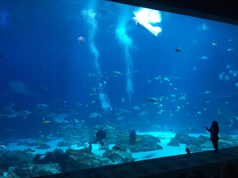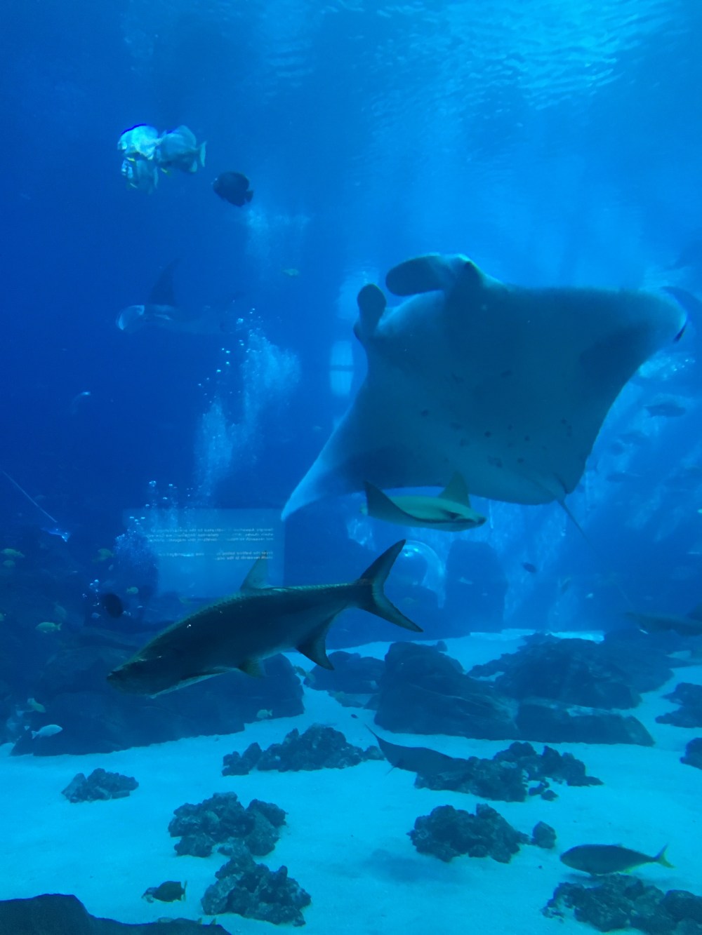 A legtöbb időt talán az Ocean Voyager igényli, itt elég sokáig el lehet üldögélni a hatalmas üvegfal mögötti élővilágot nézegetve. Bár egyikünk sem különösebben halrajongó, volt valami megnyugtató abban, ahogy a kékségben újra meg újra elúsztak előttünk a különféle halak, ráják és az akvárium cetcápái.