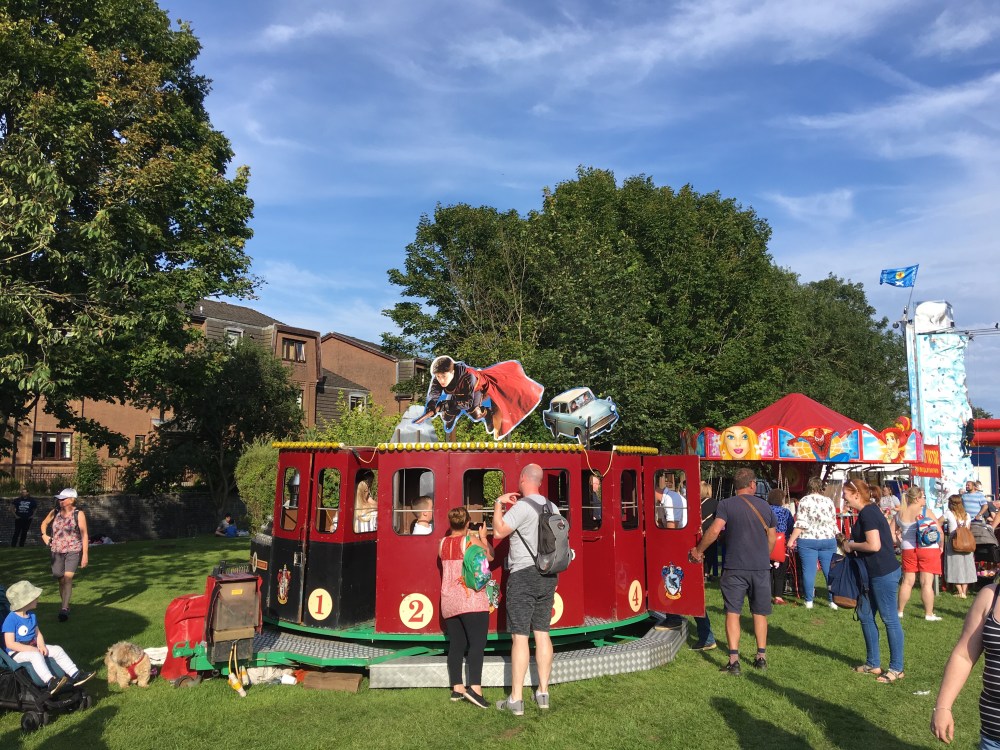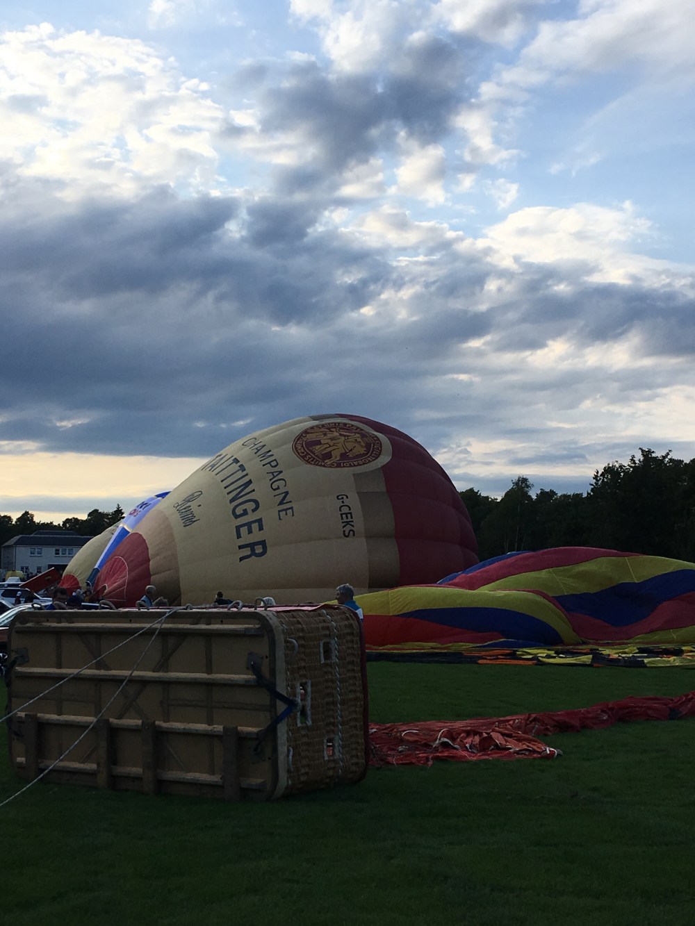 Egy igazi falusi búcsút tessék elképzelni. Nyalókákkal, tinglitangli zenekarral, légvárakkal, kisvonattal, rengeteg kisgyerekes szülővel és kutyával, vattacukorral, fűben piknikező családokkal, körhintával, hotdog-árussal és fagylaltos autóval stb. A fesztivál honlapja szerint a hőlégballonok reggel 6.30-kor és este 6-7 táján szállnak fel – természetesen az időjárás függvényében. Nyilván Skóciában ez elég lutri, többek között ezért is háromnapos a fesztivál, bízván abban, hogy valamelyik napon csak jó idő lesz. Hát most hatalmas szerencsénk volt, ugyanis 22 fok és ragyogó napsütés fogadta a résztvevőket (az itteni 22 fok ekvivalens az otthoni 33-mal).