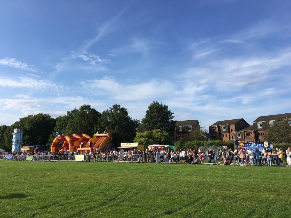 Szombaton négy óra táján értünk oda a “hivatalos parkolóba”, amely a város után lévő legközelebbi hatalmas füves területet jelentette – innen buszok indultak vissza Strathaven-be (afféle Park and Ride módon) – más módon nem lett volna megoldható ugyanis a parkolás, annyi embert vártak a szűk főutcájú, 7500 fős városba. A fesztivál maga a város szívében, a George Allan parkban került megrendezésre.