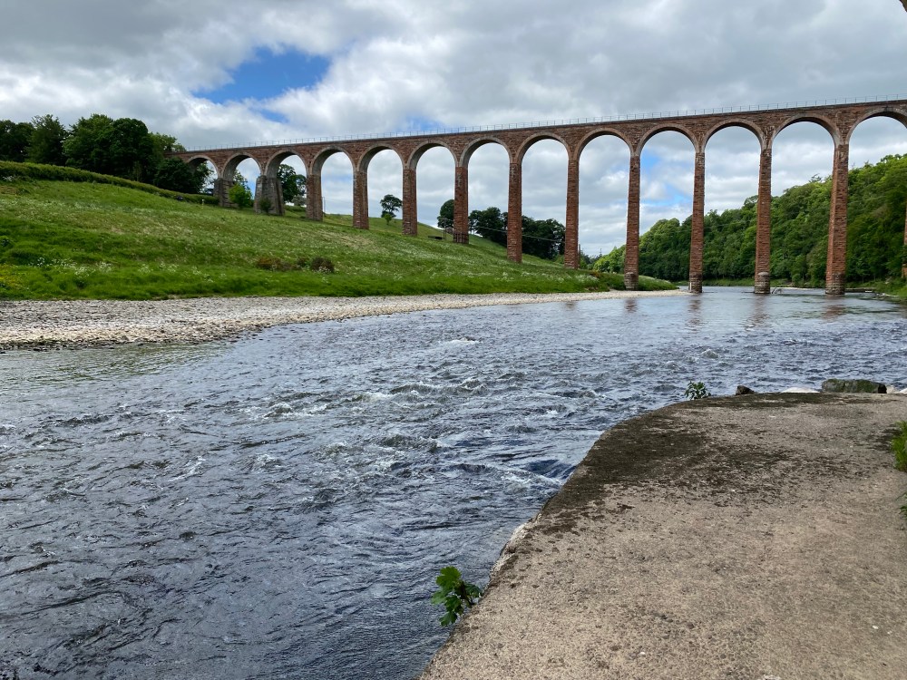 A helyszín a Leaderfoot viadukt volt, Melrose mellett, a skót-angol határ mentén (“Scottish Borders”). Ha már itt jártunk, megnéztük Melrose városát is: mint kiderült, egy közkedvelt turistacélpontról van szó, egy alapvetően csendes, nyári időszakban viszont nagyon mozgalmas kisváros, apátsági romokkal, gazdag történelemmel és rugby kultúrával. Egy kávé után pedig sétára indultunk a viadukthoz – a közvetlenül ide vezető út még mindig le volt zárva a forgatás utómunkálatai miatt, találtunk azonban egy erdei ösvényt, amely a viadukt aljához vezetett:
