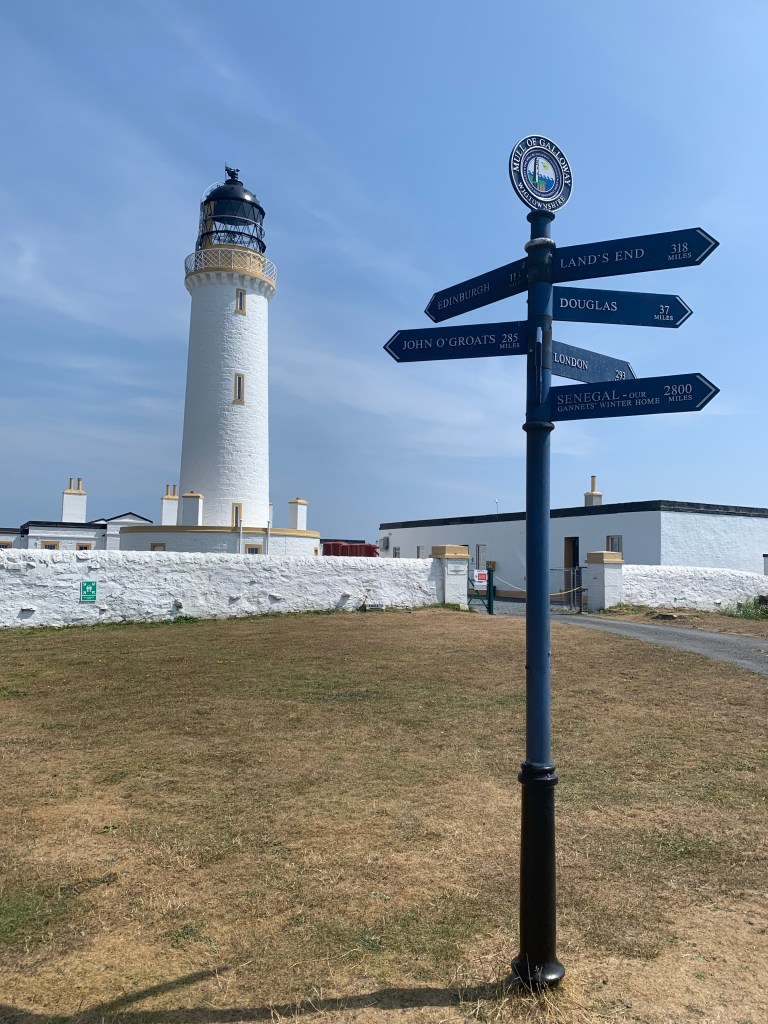Tiszta időben innen jól látható lenne Írország, az Ír-tenger túlpartján Hosszú és tekergős út után elérkeztünk a nap fénypontjához: Mull of Galloway, Skócia legdélebbi sarka. Így elmondhatjuk, hogy a sziget legdélebbi és legészakibb részén is jártunk már (Dunnett Head a legészakibb, Orkney-ra tett kirándulásunk alkalmával jártunk arra, hatalmas széllel kísérve). Bár ez a képeken nem látszik, azért is különösen érdekes ez a hely, mert innen látható a Nine Tides (“kilenc áramlat”): ha jó időben érkezünk, láthatjuk, ahogy ellentétes irányú áramlatok csapnak össze. Egy legenda szerint az összecsapó áramlatok boszorkányok művei – nem akarták ugyanis, hogy egy Írországból Skóciába tartó hajó – egy boszorkányüldözővel a fedélzetén – partot érjen.