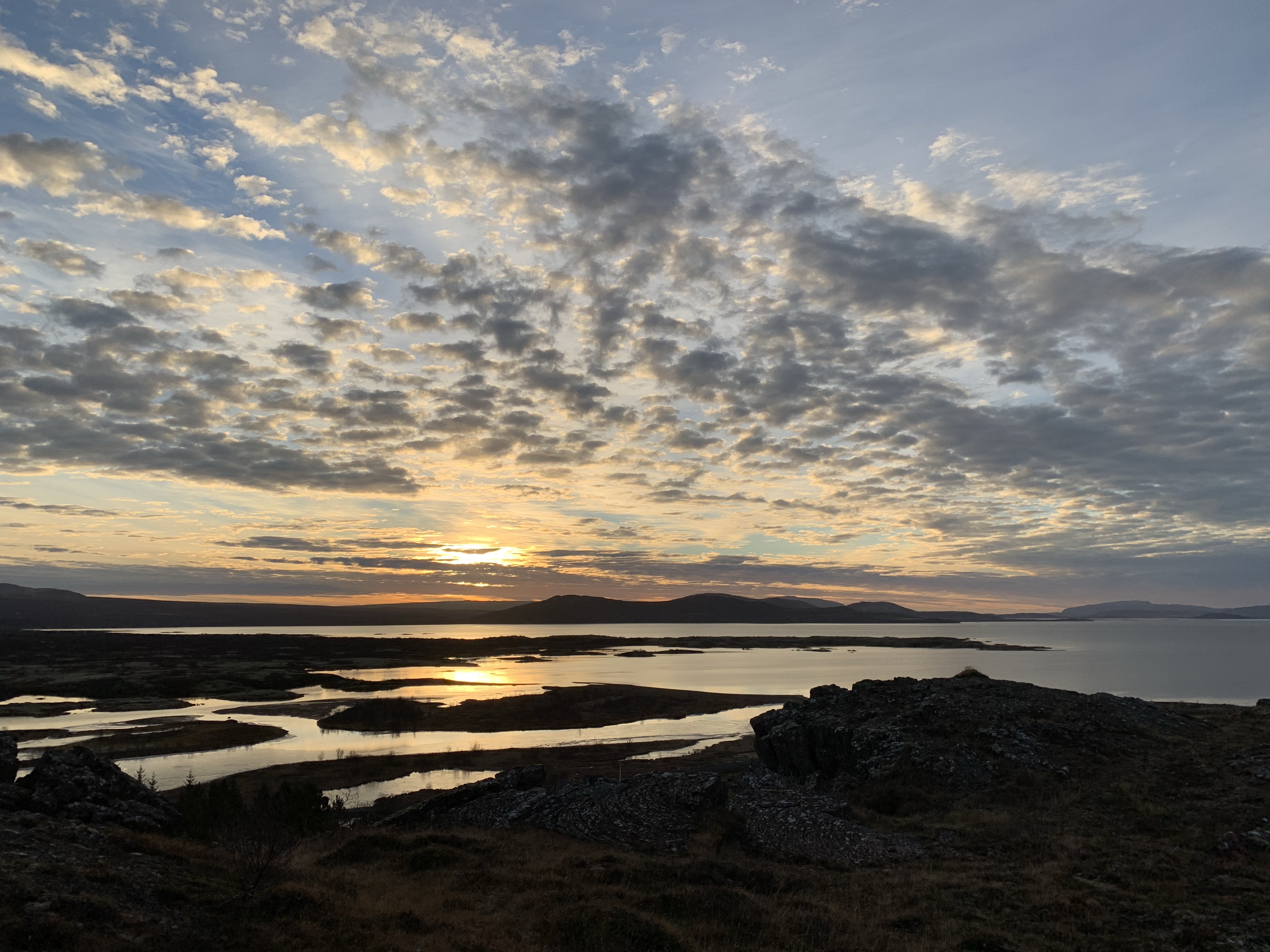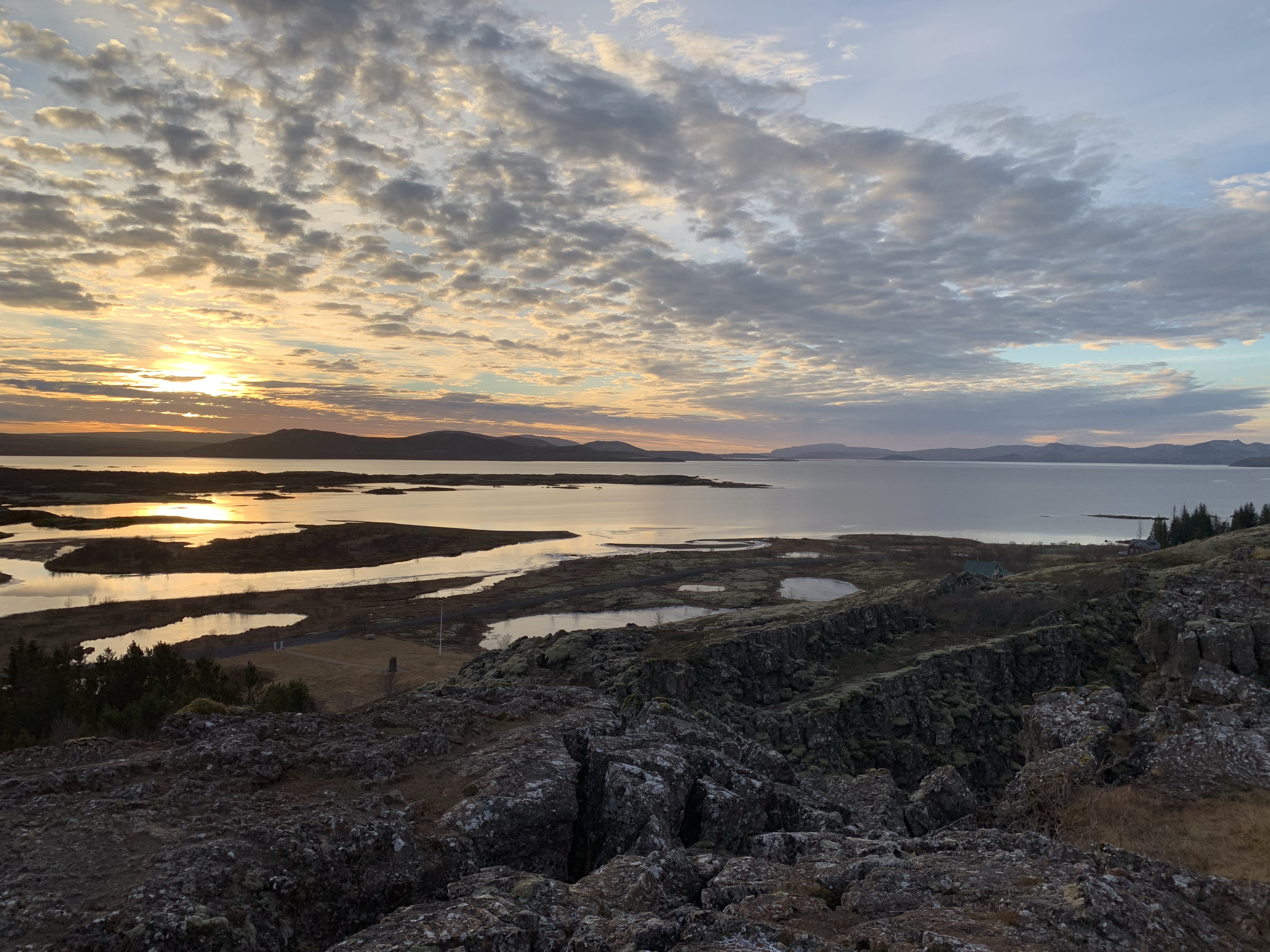 Ottlétünk alatt még viszonylag sokáig volt világos: teljes világosság nagyjából negyed 10-től fél 5-ig volt, így igyekeztünk a legjobban kihasználni ezt az időintervallumot. A 8 órai reggeli után (minden nap ezt tartottuk) elindultunk a Thingvellir Nemzeti Park felé.