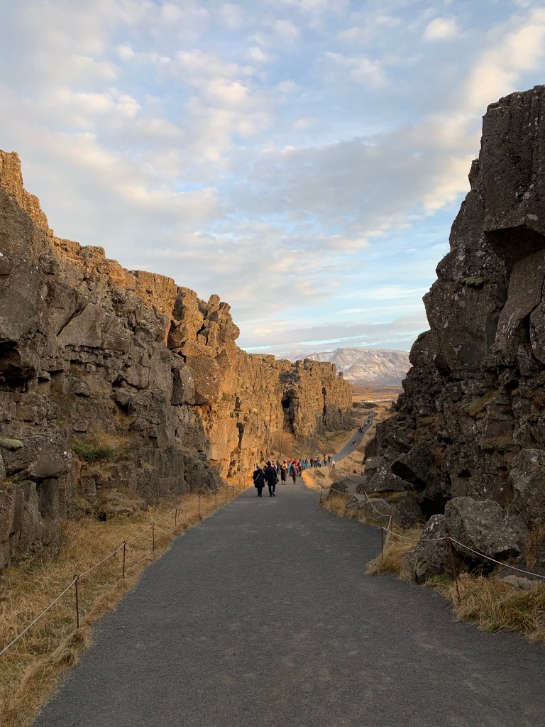 Szinte minden látványosságnál igaz, hogy minimális sétával elérhetőek, a parkoló sok helyen konkrétan csak néhány lépésre van a természeti csodáktól. Thingvellir ilyen szempontból picit kivétel – a parkolóból egy kiépített ösvény vezet végig a nemzeti park területén, amelyet nagyjából egy-másfél órás sétával lehet bejárni. A Thingvellir Izland első nemzeti parkja és az UNESCO világörökség része, illetve 930-ban Izland első parlamentjeként is szolgált – ez volt az egyik leginkább megközelíthető terület a legnépesebb régiók számára. Földrajzi szempontból különösen érdekes, hogy ez az észak-amerikai és eurázsiai tektonikai lemezek találkozási pontja.