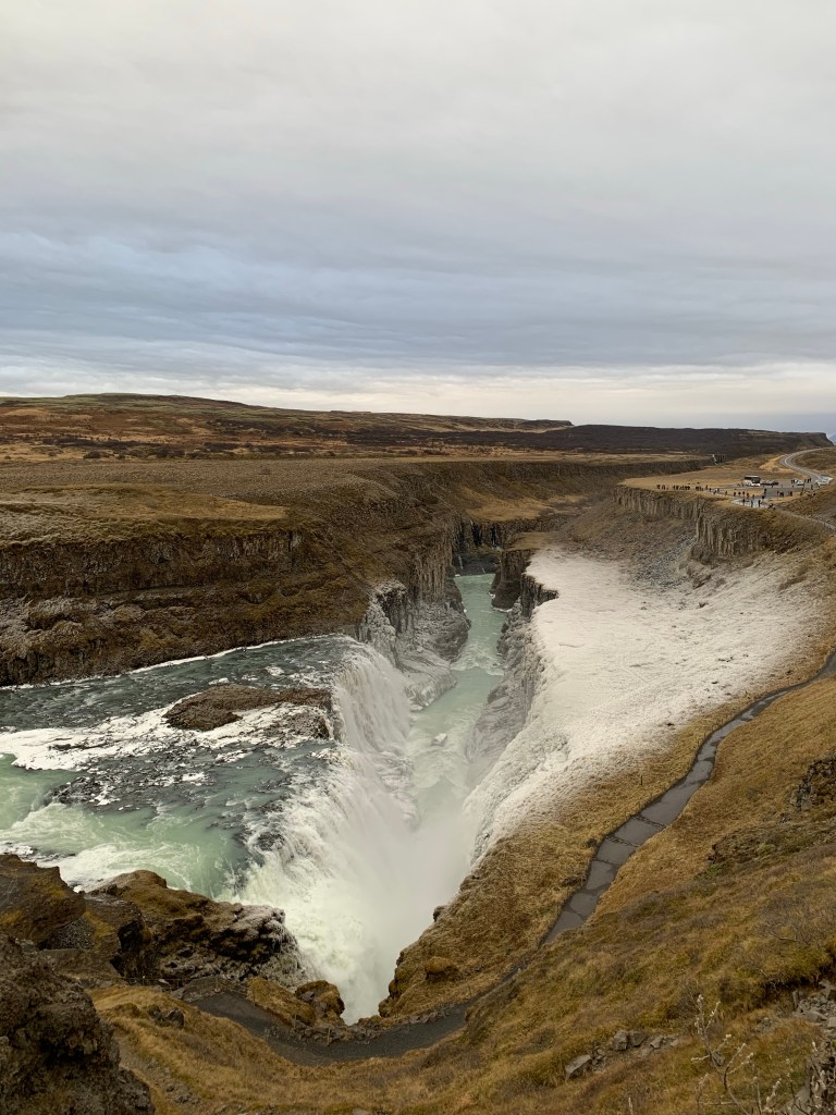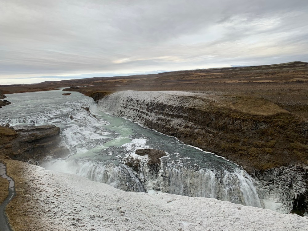 Meglehetősen nehéz volt elhagyni a gejzíreket, egész nap el tudtuk volna nézni ezt a természeti csodát, de ideje volt továbbhaladni, hogy újra leeshessen az állunk egy fél órával később a Gullfoss vízesésnél.