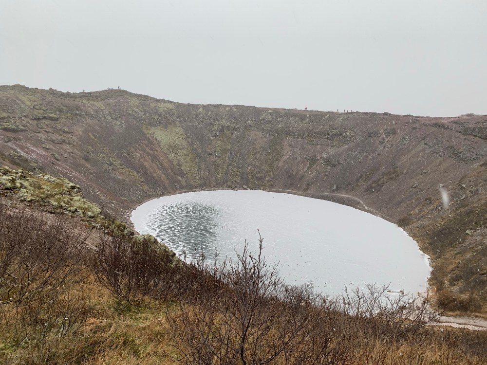 A napot utolsó állomása a Kerid kráter tó volt – itt már elég jól elkezdett havazni is.